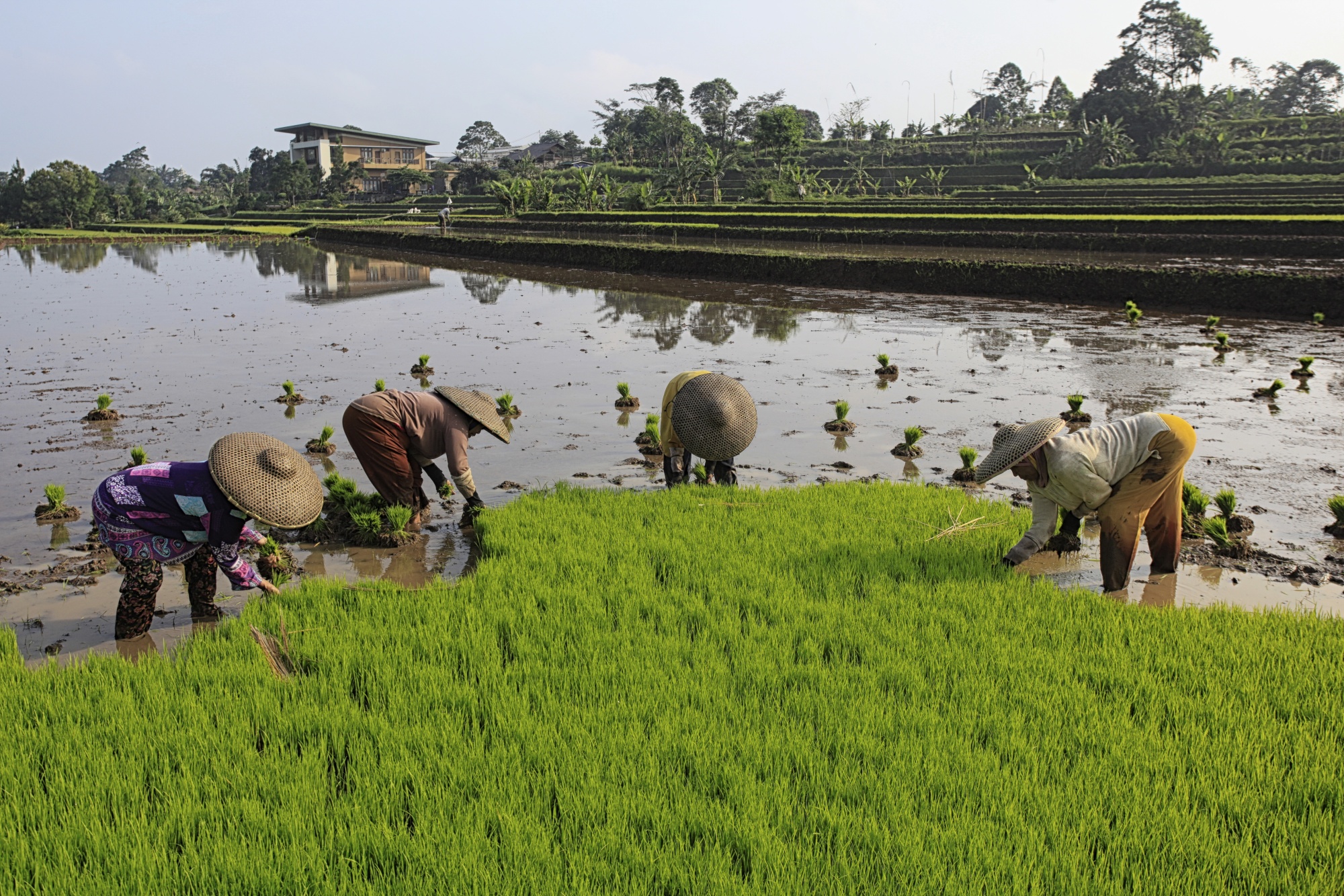 农民在印度尼西亚的博加种植水稻幼苗,日期为5月3日。摄影师:Adriana Adie/NurPhoto