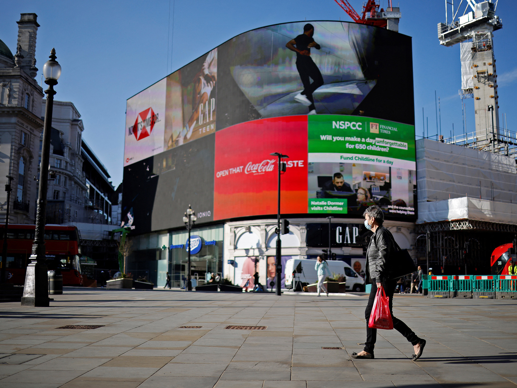 一名行人穿过伦敦市中心几乎空无一人的皮卡迪利广场。摄影师:TOLGA AKMEN/AFP这对英国也是一个巨大的变化,英国四分之一的经济产出依赖于伦敦。在过去一年中,伦敦遭受的工资单下降几乎占全国的三分之一,这引发了关于这座城市是否能推动国家复苏的问题。