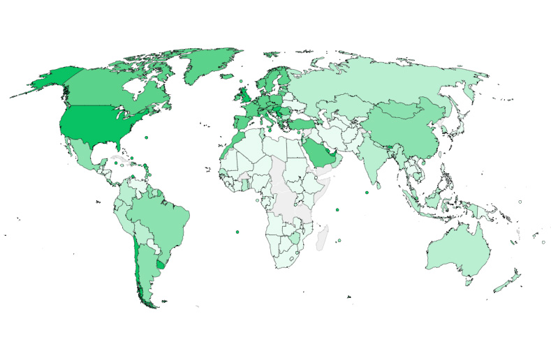 根据彭博社收集的数据,全球已向174个国家的人们接种了超过12.5亿剂疫苗。最新速度约为每天接种1940万剂。 在这里获取最新数据。
