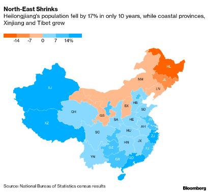 对中国新的2020年人口普查数据进行细致分析显示,随着旧的烟囱工业逐渐消失,中国东北部的“霉迹斑斑”的省份人口在过去10年中出现了萎缩。出口导向的沿海省份看到其人口增加,与其经济发展轨迹相匹配。全国范围内的数据显示,中国人口变老,城市化程度增加,生育率降低。