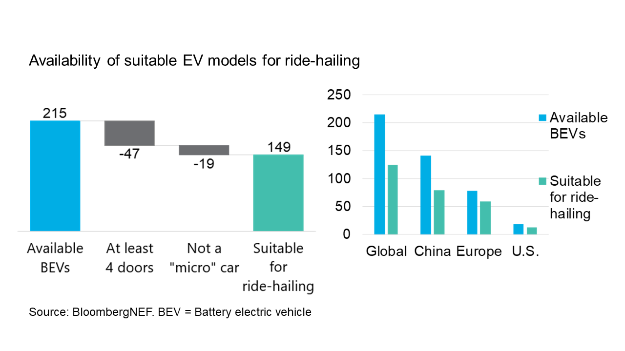 我的同事Andrew Grant在BNEF审查了215款电池电动车型,发现在像美国这样的市场,仅有13款电动汽车是合适的,基于车门数量和车辆尺寸。其中大多数超出了司机可以接受的价格范围。