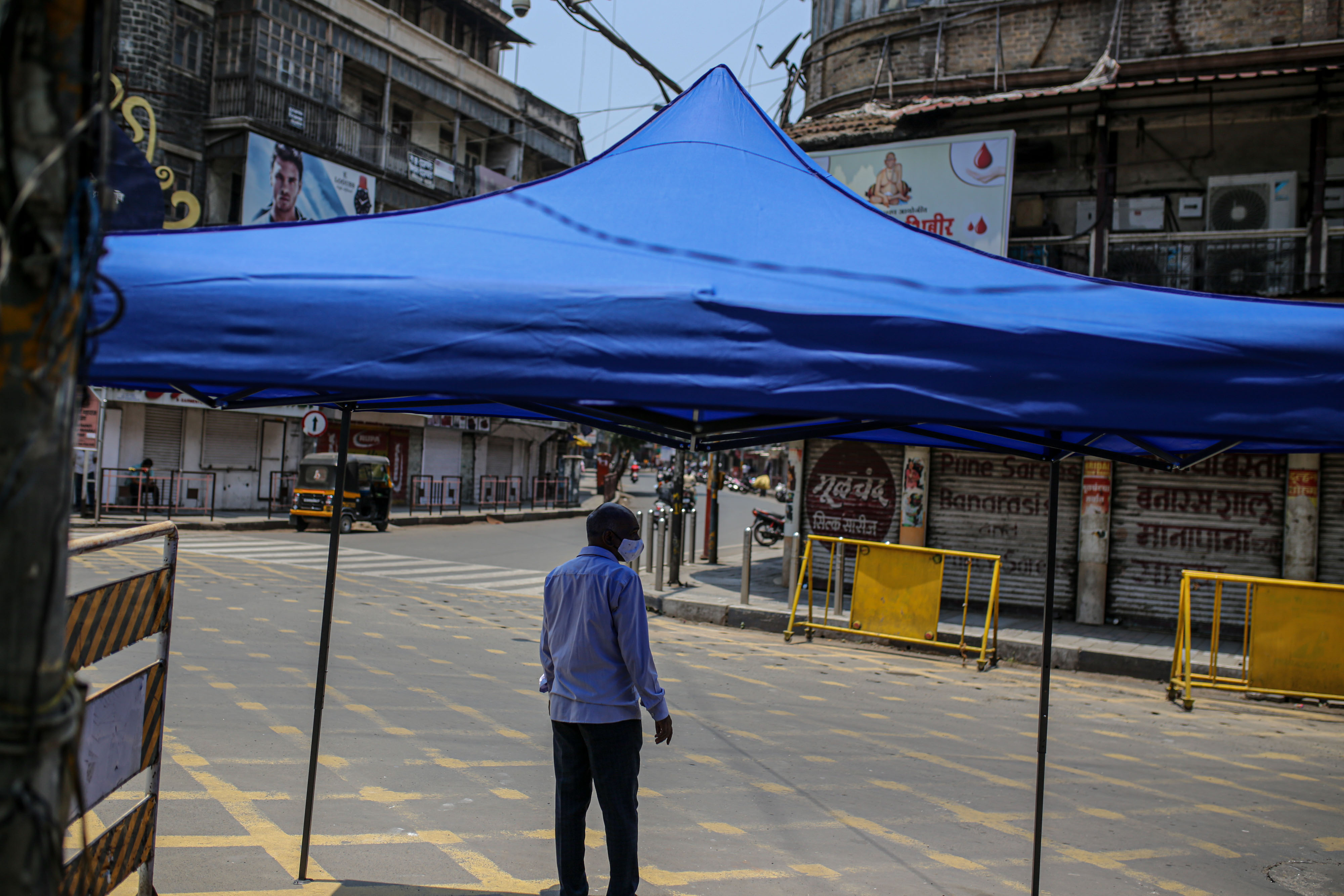 在印度普纳,2021年5月5日,封锁限制期间商店关闭。