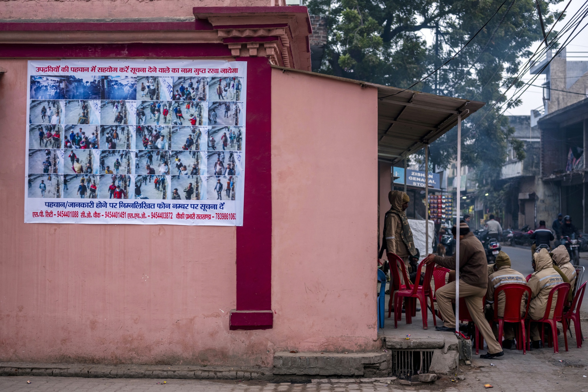 警察在卢克诺市附近聚集,横幅上展示了从监控摄像头录像中提取的静止画面,呼吁公众帮助识别抗议者,2019年12月30日,卢克诺。摄影师:Prashanth Vishwanathan/Bloomberg穆罕默德·阿米尔(Mohammad Amir)是北方邦首府勒克瑙的一名画家,他因涉嫌抗议公民法而于2019年12月被捕后被拒绝保释,目前仍然被关押在监狱中。他的家人收到通知,要求缴纳270万卢比(36,821美元)的赔偿金,但他们无力支付。阿米尔的妻子表示,他否认所有针对他的指控,并称他之所以成为目标是因为他是穆斯林。