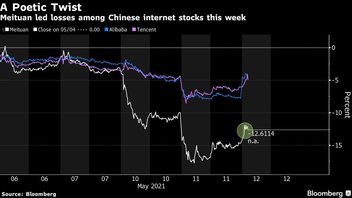 美团本周在CEO王兴在社交媒体上发布一首1100年前的诗后两天暴跌260亿美元,吓坏了投资者,他们认为这是对中国政府的隐晦批评。尽管他删除了这篇帖子,但这种反应显示了北京打击直言不讳的马云及其帝国所造成的恐惧。对于科技亿万富翁的教训是“要想蓬勃发展,他们需要闭嘴,”彭博观点的Shuli Ren写道。