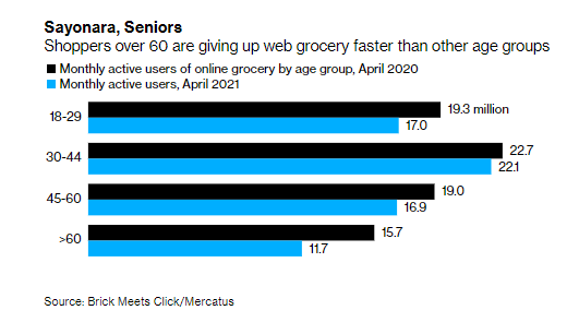 新冠疫情爆发推动了在线杂货购物,促使行业观察者宣称数百万人的习惯已经永久改变。但要留住这些购物者绝非易事 — 尤其是随着年长顾客已经开始恢复到疫情前的行为。这对像Instacart这样的网络杂货专家来说也不是好消息,该公司为成千上万家超市处理订单和配送,并帮助近30万名老年顾客学会如何使用其服务。对于实体食品零售商来说也不是好消息,因为购物者在网上购买食品时花费的金额比自己搬回家时要多得多。