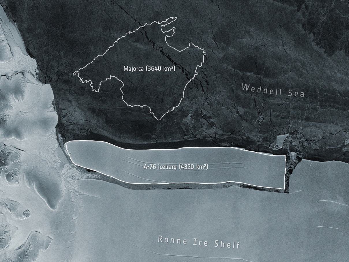 一个和马略卡岛一样大的冰山已经从南极洲海岸断裂,通过卫星和飞机测量,确认它现在是世界上最大的。