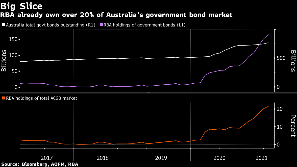 此外,央行已经拥有债券市场五分之一以上的份额,而且这一份额每周都在增加。澳大利亚储备银行副行长盖伊·德贝尔在本月早些时候的一次讲话中表示,RBA意识到其债券购买不会通过过多购买导致市场功能紊乱。因此,迹象已经显而易见。