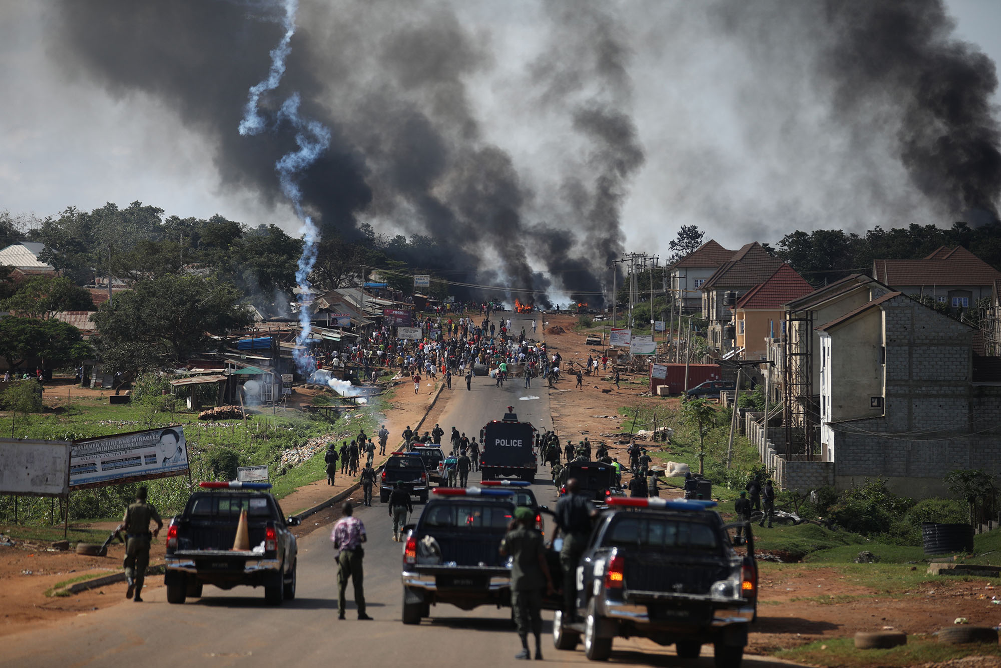 尼日利亚警方在阿布贾发生冲突时使用催泪瓦斯。