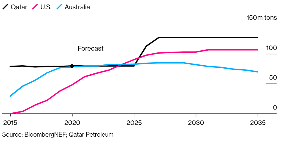 卡塔尔,世界最大的液化天然气出口国,正在大幅增加产量,并通过降低价格并推进290亿美元的项目来增加燃料出口超过50%,挤压竞争对手以排挤他们出市场。这一举措阻碍了其他地方新工厂的前景。
