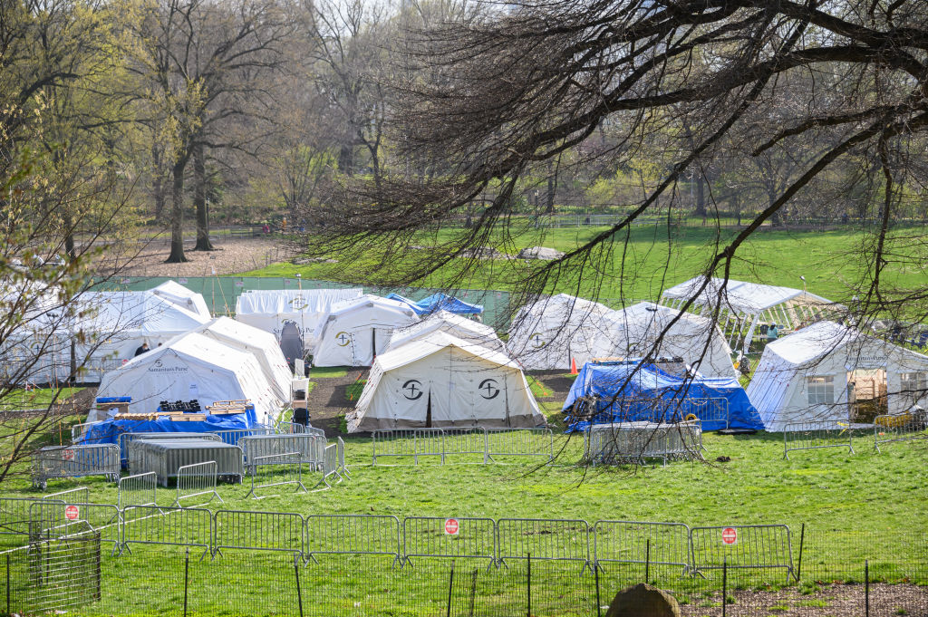 在2020年4月冠状病毒大流行期间,中央公园东草坪上的临时医院。摄影师:Noam Galai/Getty Images North AmericaTPL表示,随着气候变化加剧,这样的行动尤为必要。绿色空间有助于缓解极端高温,特别是当它们拥有充足的树冠或可供使用的水体时。高温可能会导致严重的健康后果,如哮喘发病率增加。绿色基础设施还可以帮助吸收雨水,从而防止洪水发生。