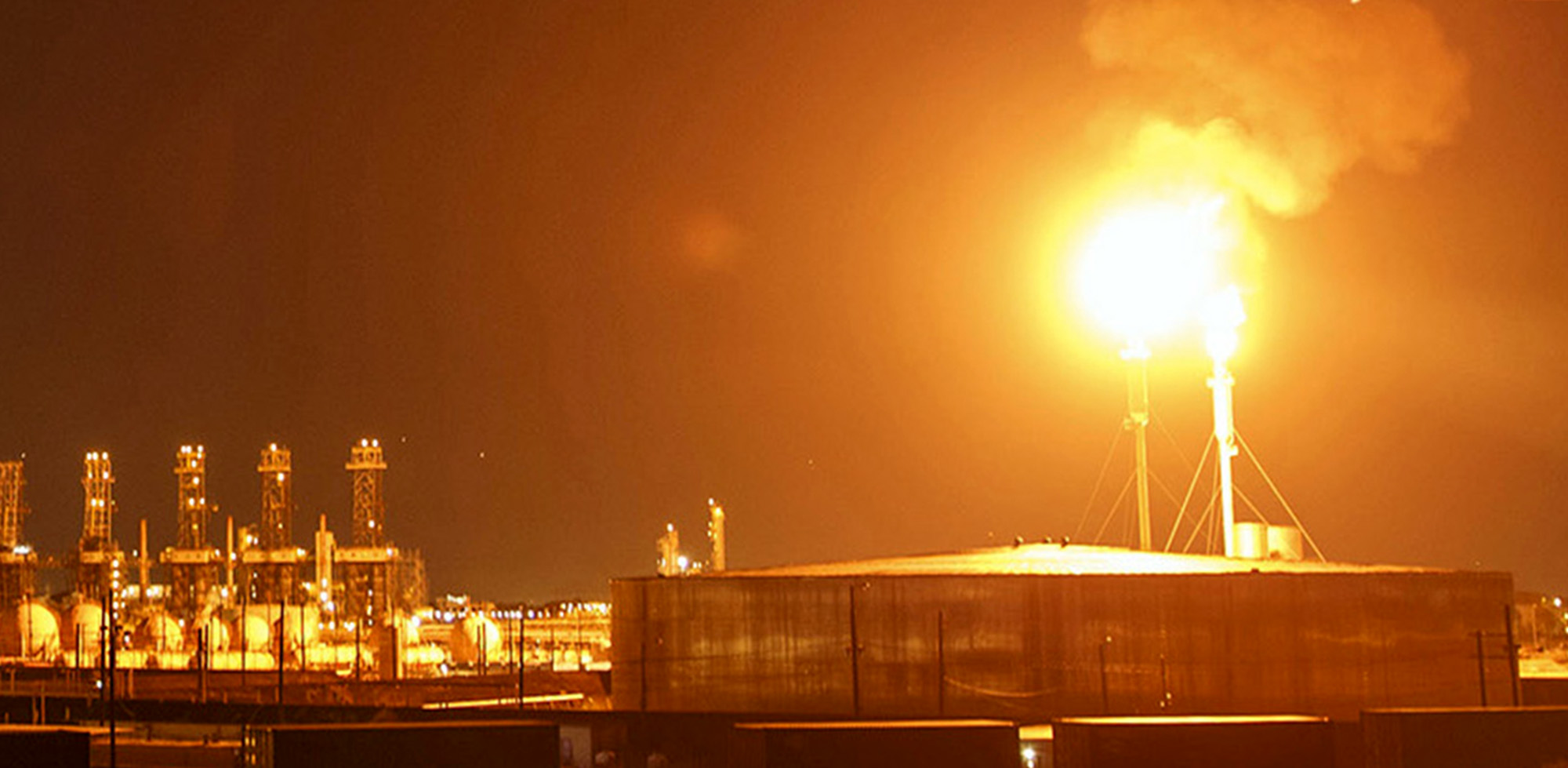 火焰从加利福尼亚托朗斯的埃克森美孚炼油厂喷射出来。