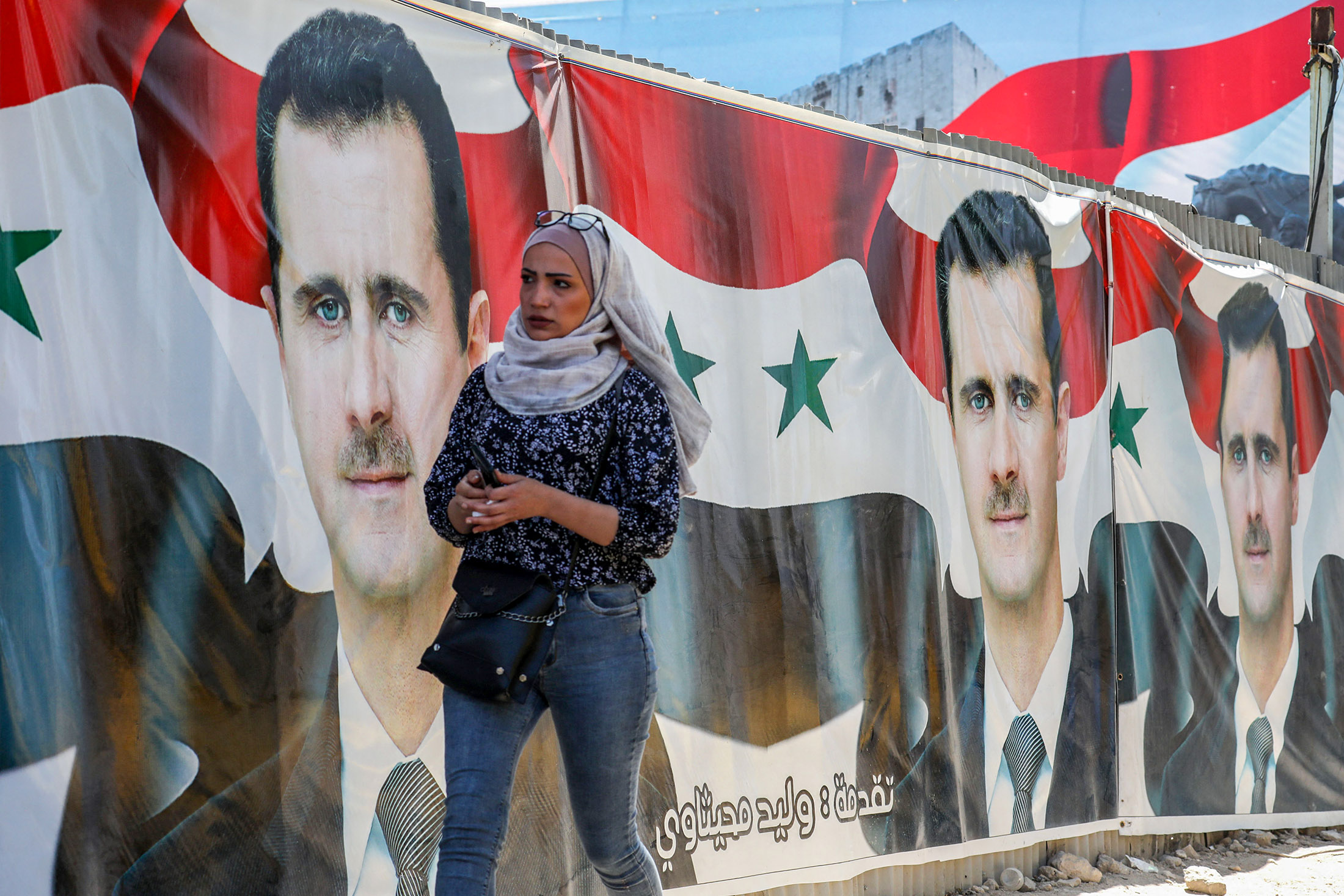 巴沙尔·阿萨德在叙利亚大马士革的选举竞选广告牌。摄影师:LOUAI BESHARA/AFP即将发生