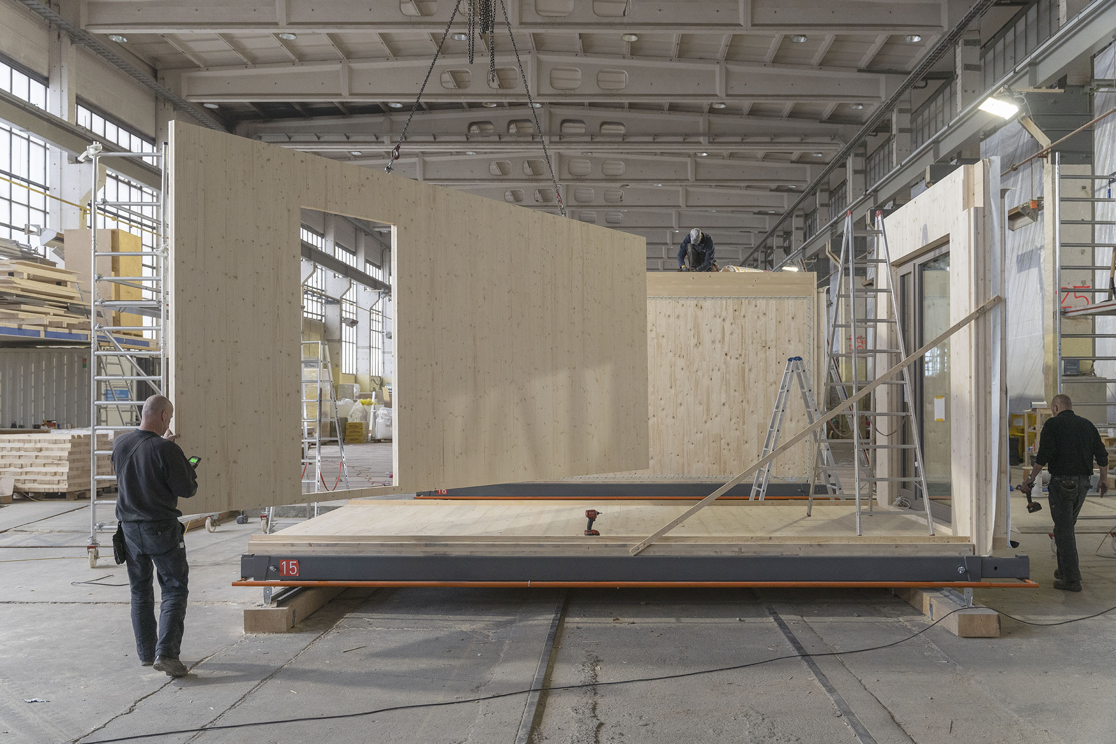 每天在柏林科本尼克的一个工地上组装六个模块。来源:扬·比特该项目的环保特性反映了木结构建筑在德国首都已经留下印记的更广泛趋势。