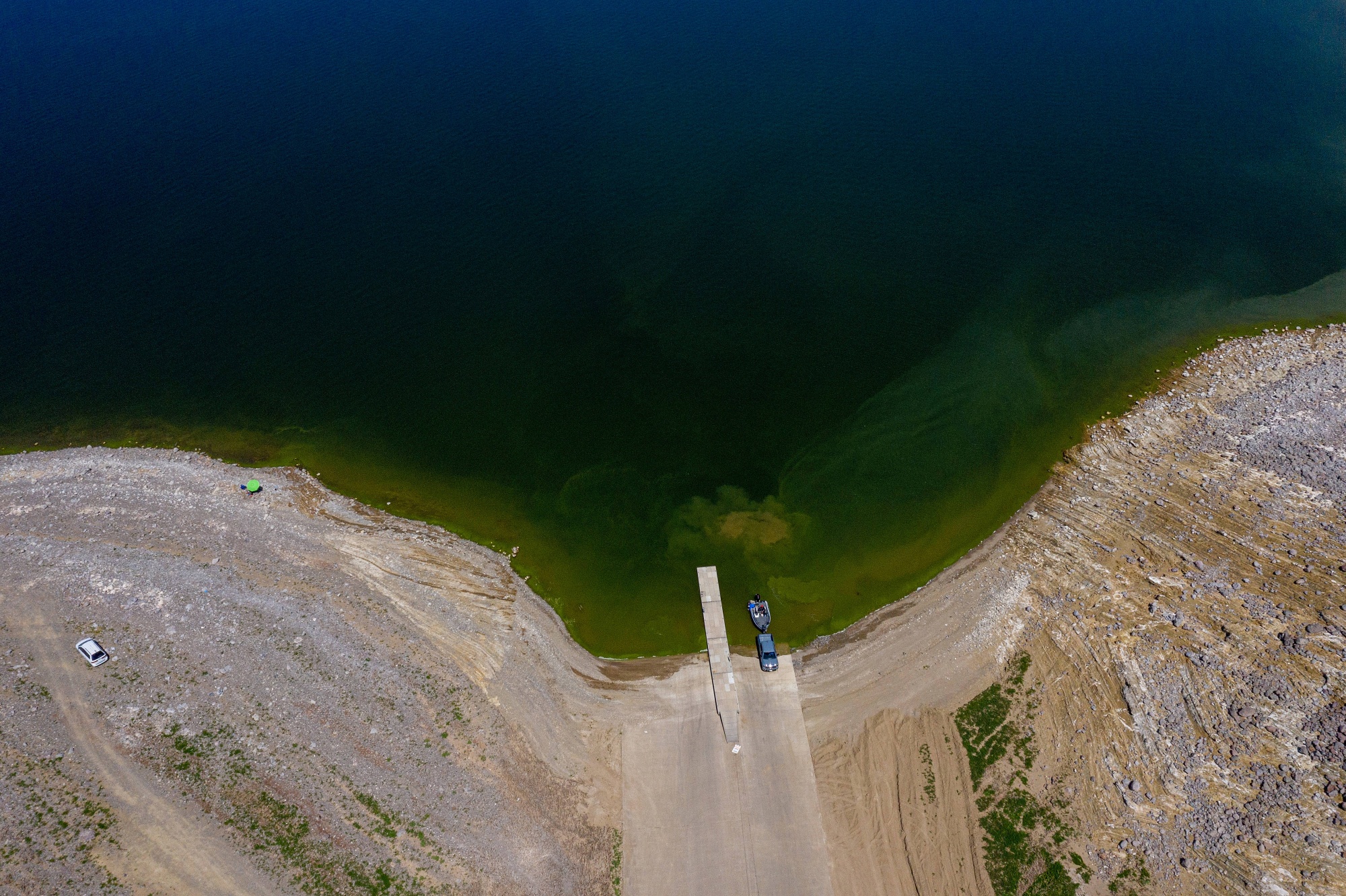尼卡西奥水库摄影师:大卫·保罗·莫里斯/彭博社而供水仍在减少。旧金山外的尼卡西奥水库已经干裂成一片龟裂的干涸泥地,而圣何塞以南的圣路易斯水库边缘长满了绿藻。