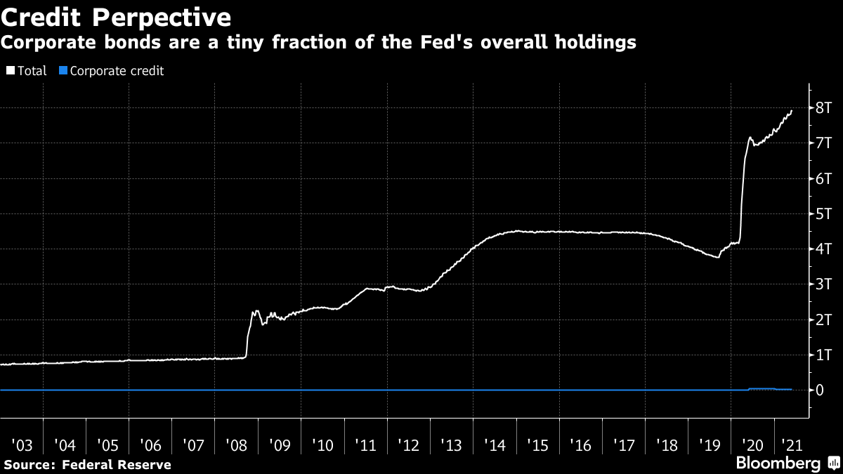 所以在这里,让我们暂停一下,反思一下联邦储备系统在疫情期间救助行动中可能是最具争议的举措。中央银行在某些领域受到了严厉批评,因为它超越了自己的职权范围,挑选了“赢家和输家”,扼杀了价格发现,助长了道德风险…甚至根据杰夫·冈达奇的说法,违反了法律。(注:SMCCF是在财政部长的批准下成立的,并由根据CARES法案提供的资金提供支持。)