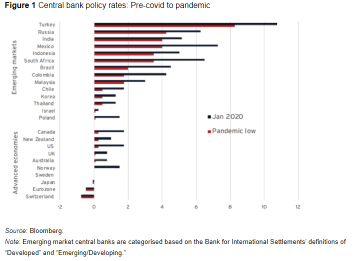 作者分析了16家机构的工作,发现了一些共同的主题:响应的规模、速度和广度,以及对更广泛工具的依赖,如资产购买和支持信贷。他们还表示,新兴市场的行为更像发达世界的同行。