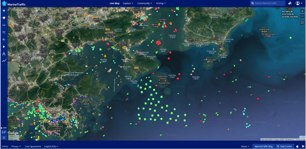 停泊在中国盐田港外的船只。来源:MarineTraffic.com“南中国港口拥堵问题的恶化正成为集装箱航运行业最新的主要干扰因素和供应瓶颈,”香港捷信集团的分析师Andrew Lee在一份报告中表示。“我们预计这将导致集装箱运价在短期内创下新的历史高点。”