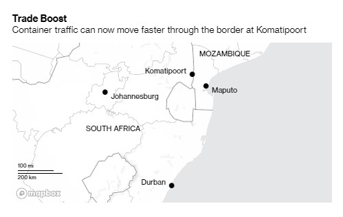 南非和莫桑比克之间的新内陆过境设施可能会缩短马普托港和该地区工业和商业中心之间的运输时间。 DP World在科马蒂波特(南非与莫桑比克东部边界上的小镇)开设了一个新的干港仓库,作为一个保税集装箱设施,让货运商在从距离马普托港100公里(62英里)的地方到达时更快地清关。总部位于迪拜的港口运营商表示,这样一来,一个集装箱可以在到达马普托后的一天内到达南非的金融中心约翰内斯堡和首都比勒陀利亚。