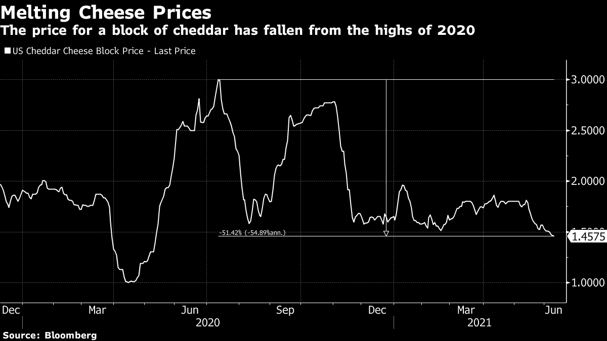说奶酪和CPI?在等待美国通胀数据是强劲还是温和的时候,考虑谦卑的切达奶酪是值得的。去年新冠疫情危机期间,美国基准奶酪价格暴跌,因为餐馆关闭,削减了一个关键的需求来源。然后,随着人们涌向杂货店(或者大量订购外卖披萨),奶酪制造商突然发现自己面临一系列供应链问题,急于生产足够满足需求。