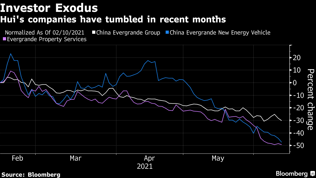 有关中国恒大集团健康状况的再度担忧,许家印的旗舰房地产公司,已将其股价推至自2020年3月以来的最低水平。债券持有人也在争相抛售,受到开发商附属公司拖欠付款和监管机构调查恒大与中国北方一家鲜为人知银行关系的报告的影响。