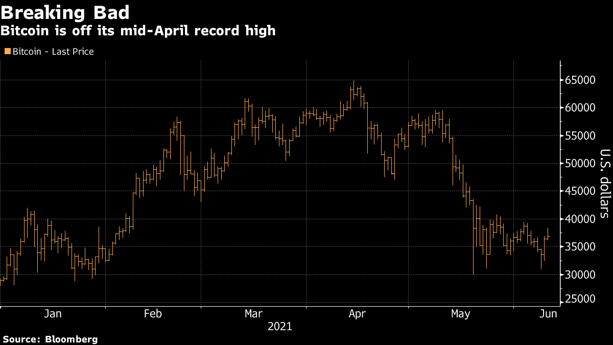 但是考虑一下我们生活的世界,垃圾债券的平均收益率接近历史最低水平的4%。更不用说,比特币价格已经暴跌。周五,全球最大的加密货币交易在36,800美元附近,比4月份的历史最高点下跌了惊人的43%。