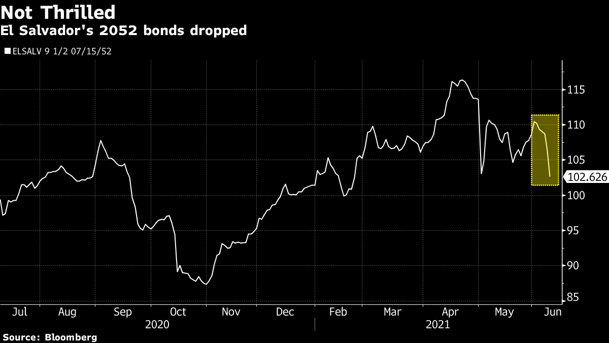 2052年到期的该国债券在议员批准该计划后下跌幅度最大,这是一个多月来的最大跌幅。IMF发言人杰瑞·赖斯(Gerry Rice)周四再次强调,称萨尔瓦多的采用引发了“一系列宏观经济、金融和法律问题”。