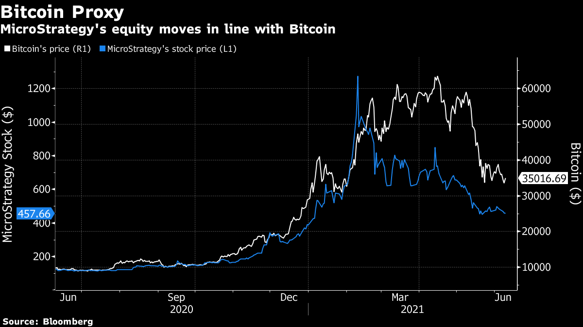 债券市场正在拥抱MicroStrategy,但在股票市场中,它的光芒正在黯淡。该股票在2021年仍上涨了31%,但从2月的高点下跌了约60%。