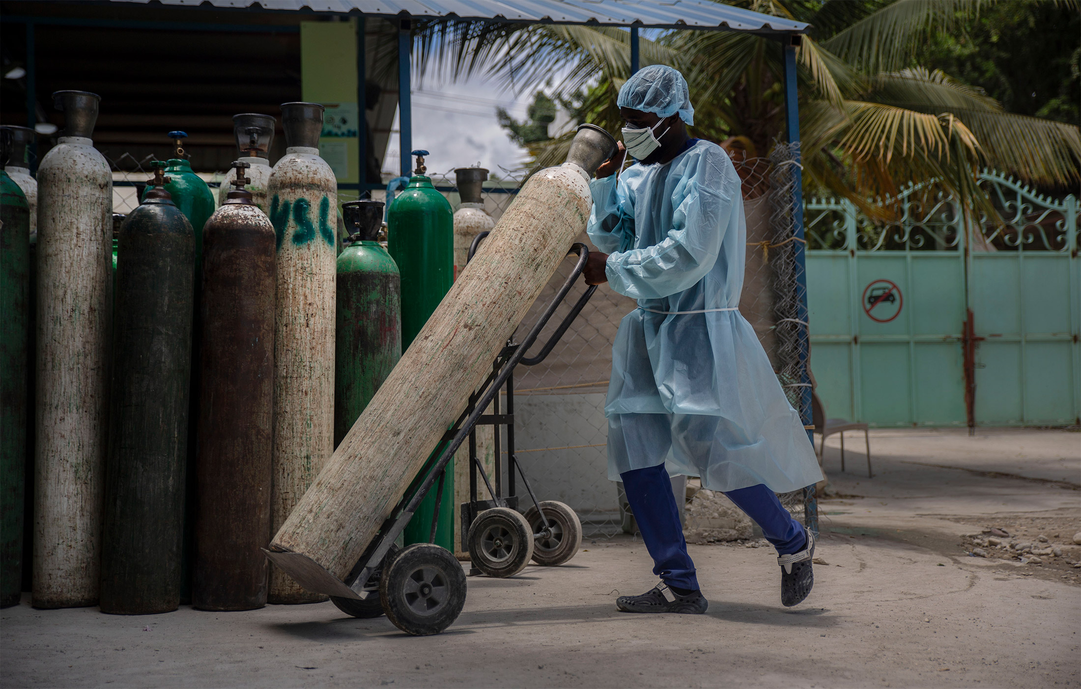 一名医院员工于6月5日在海地太子港运送氧气。这个拥有超过1100万人口的国家尚未接种任何疫苗。摄影师:约瑟夫·奥德林/美联社### 新经济本周要闻