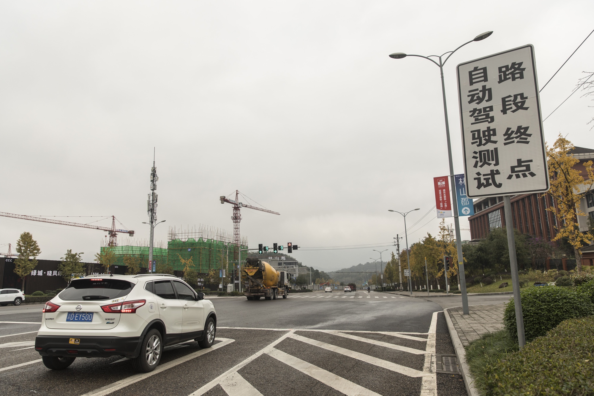一辆车停在重庆的自动驾驶车辆测试区终点标志旁边。摄影师:沈其来/彭博社一旦从各家公司收集到数据,任何敏感信息都将被筛选出来,并添加反篡改软件作为额外安全措施。其他汽车制造商随后可以浏览这个“数据库”,选择他们想要利用的数据集,并支付访问费。