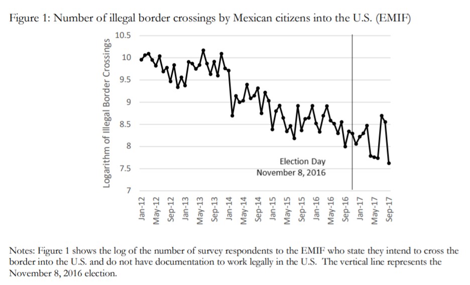 尽管特朗普总统大肆威胁,但经济学家马克·胡克斯特拉和桑德拉·奥罗斯科-阿莱曼在一项由国家经济研究局发布的研究中写道,他在2016年的当选对未经授权的墨西哥工人进入美国的整体影响不大。但特朗普成功减少了被驱逐的墨西哥人以及至少暂时减少了中美洲人的移民。