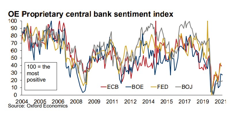 根据牛津经济学的基于机器学习的分析,美联储和欧洲央行正在将其货币政策评论转向更乐观的语调。这两家央行现在已经回到了大约疫情前乐观水平的一半,但是尽管美国10年期国债的交易员似乎已经将这一点定价进去,欧元区债券市场却没有,Tamara Basic Vasiljev在一份报告中写道。
