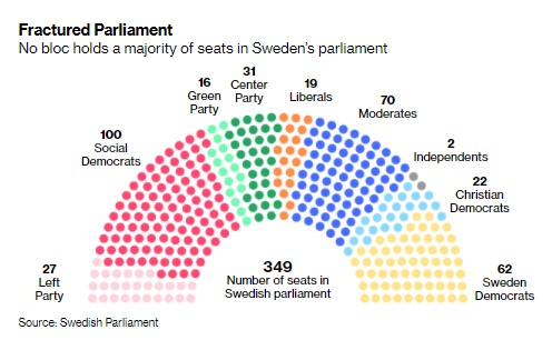 瑞典总理斯特凡·洛夫文在议会中失去了信任投票,导致他的少数派联盟垮台,使最大的北欧经济体陷入政治混乱。如果瑞典人被迫提前举行选举,这将是自1958年以来的首次。