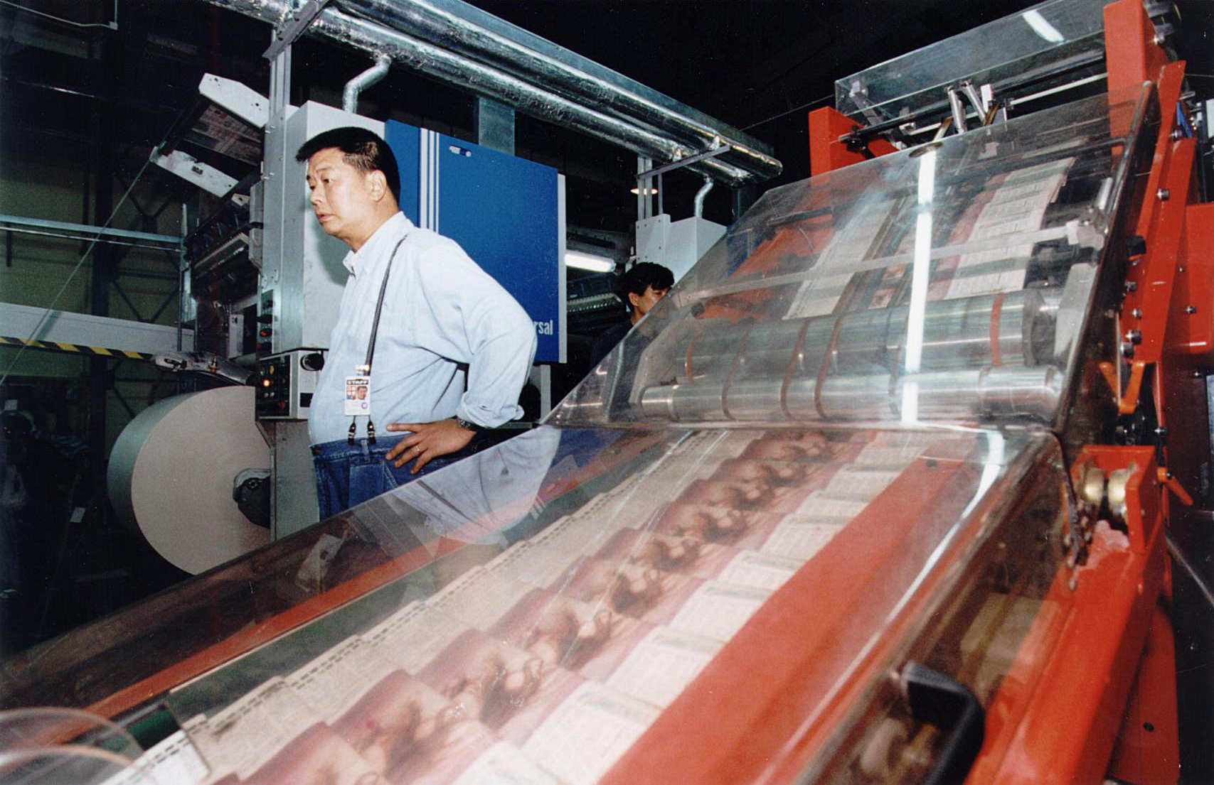 1995年6月,赖在苹果日报首版印刷厂。来源:苹果日报有限公司。在彭博政治网页上查看我们的所有重要新闻 这里*,告诉我们我们做得如何或者我们错过了什么,请发送电子邮件至* [email protected]*。*