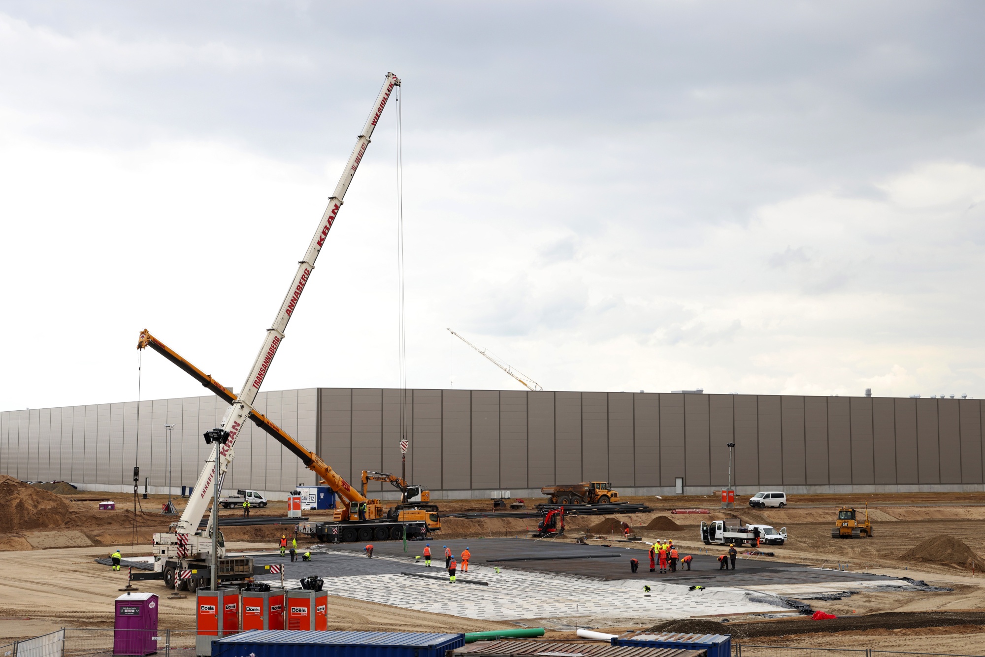 上个月在德国Gruenheide特斯拉工厂现场作业的建筑起重机。摄影师:Liesa Johannssen-Koppitz/彭博社保时捷周一表示将与德国锂离子专家合作,最早于2024年为其电动跑车生产电池。同一天,沃尔沃汽车集团表示,将与瑞典的Northvolt合作,后者是由前特斯拉高管创立的公司,将于2026年投入运营一家电池工厂。未来几周,雷诺和斯泰利安蒂斯将举办类似于大众“Power Day” 三月份的电动汽车活动。