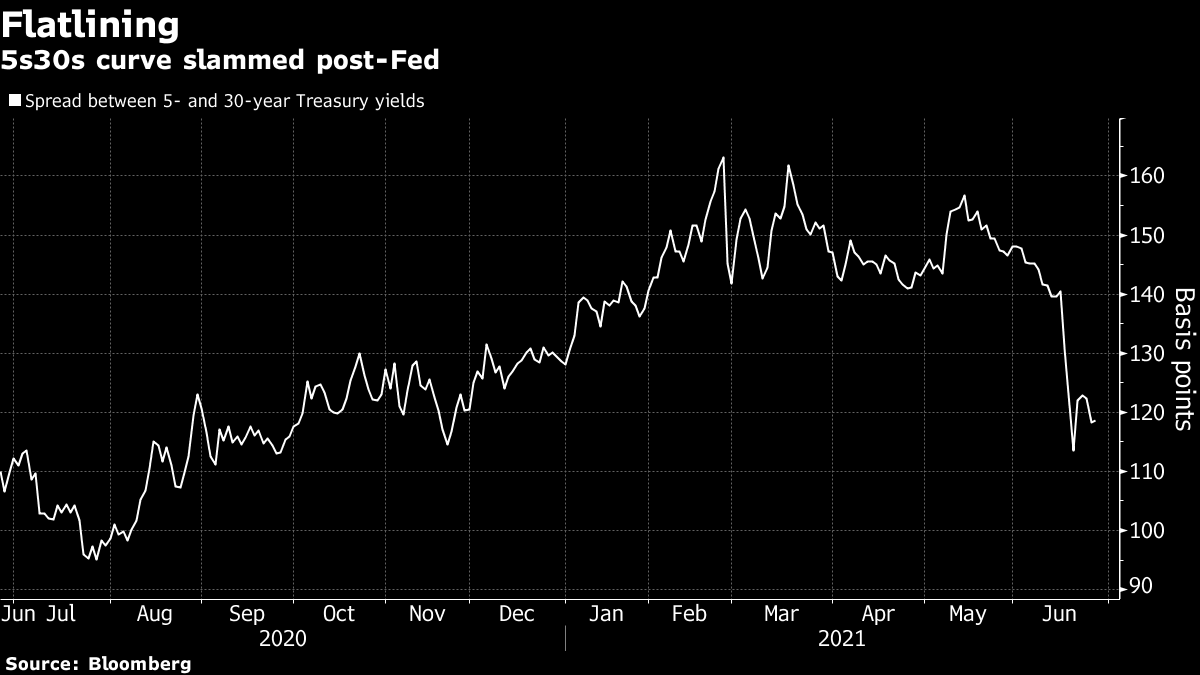 道明证券的Priya Misra和Gennadiy Goldberg建议押注5到30年期收益率曲线将从当前重新走高,他们认为上周的急剧变平“看起来极端,并且可能是由持仓清算驱动的。” 他们在121个基点处启动了这笔交易,目标是150个基点。