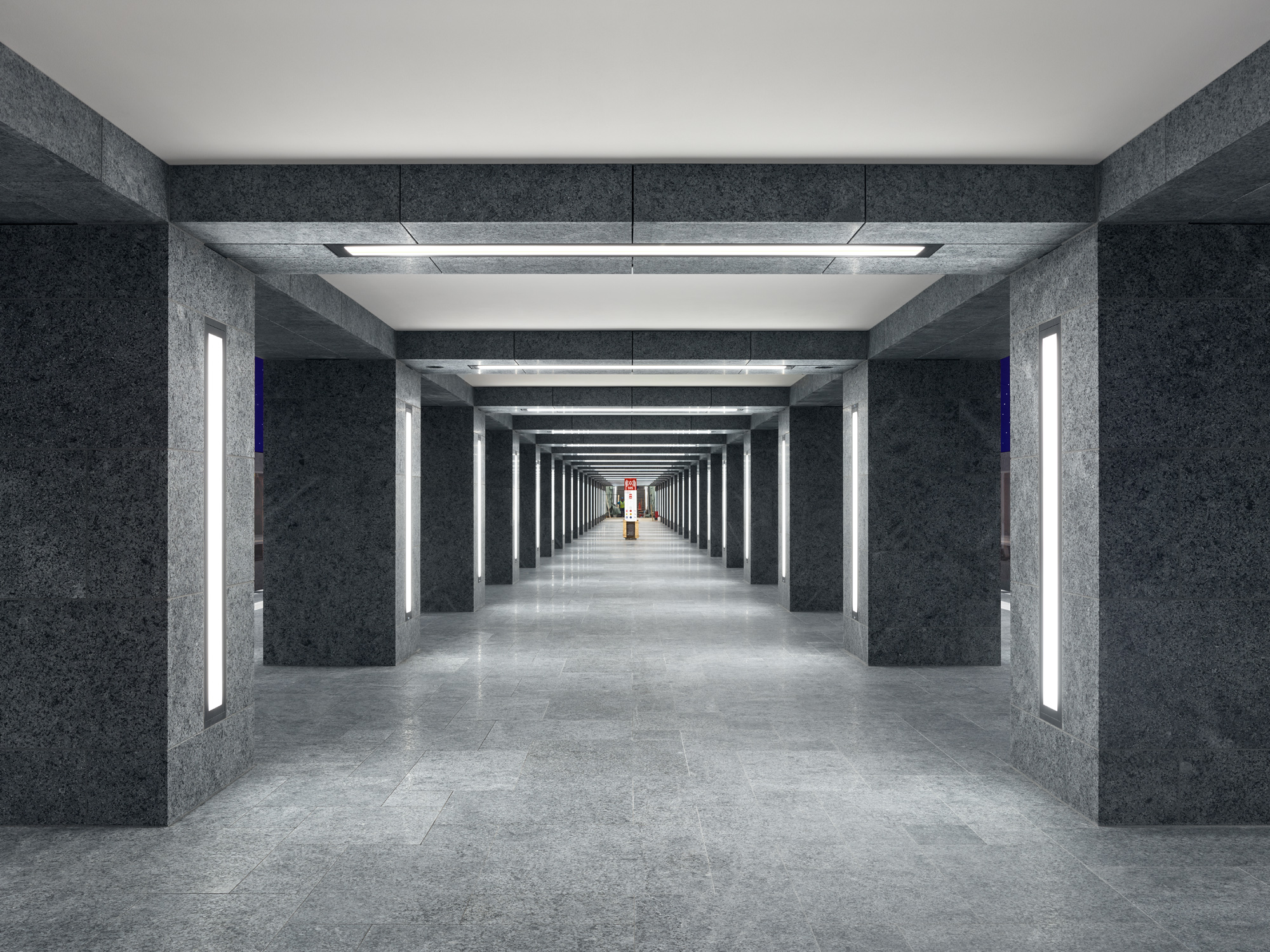 由Karl Friedrich Schinkel设计的老博物馆坐落在新的U-Bahn站上方。摄影师:Krisztian Bocsi/Bloomberg对于大众交通设计的爱好者来说,柏林的U-Bahn系统自1902年开通以来已经大大扩建,拥有多种建筑风格的有趣组合。许多车站非常朴素,但网络中散布着一些古怪的珍宝,包括极其朴素,但网络中散布着一些古怪的珍宝,包括新巴洛克风格的拱顶,波普艺术曲线和上世纪80年代的迷幻风。乍一看,Dudler对博物馆岛站的构想似乎更偏向极简主义、朴素的方向:主要的大厅是一排质感灰色柱子的阴郁、陵墓般的回廊。