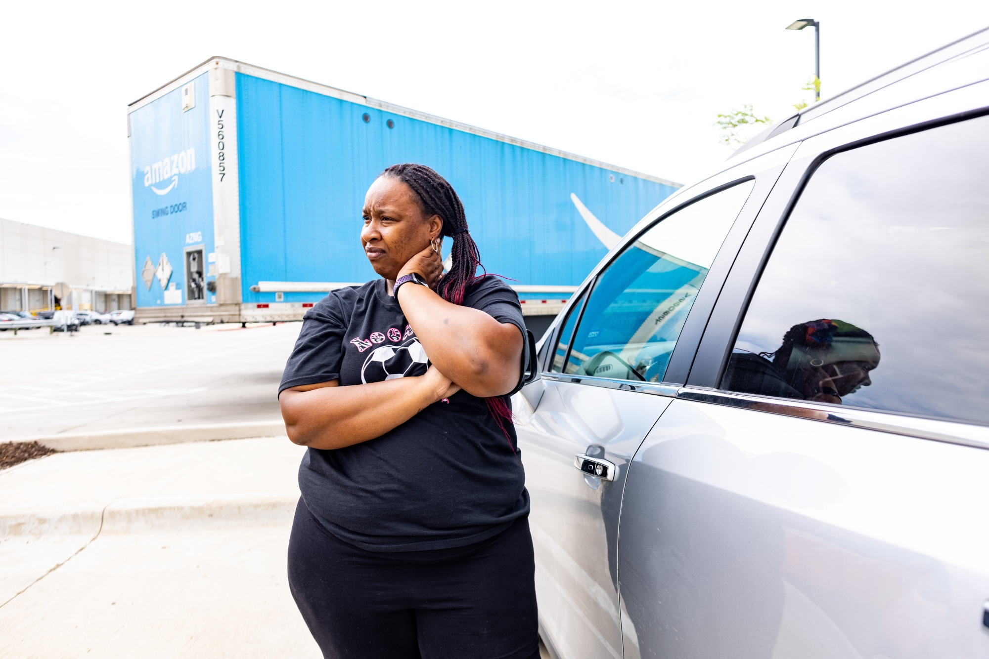 Lira 说她被解雇是不公平的。“我差点失去了房子。”摄影师:Kathy Tran/Bloomberg亚马逊的客户不知道 Flex 司机在前往他们住所的路上遇到了什么障碍,算法也不知道。Lira 说有时候有很多司机排队在交付站外面,她等了长达一个小时才取回她的包裹,导致她在开始路线之前就已经落后于计划。当她发现轮胎上有一根钉子时,亚马逊没有提供来取回包裹的服务,而是要求她把包裹送回交付站。Lira 担心轮胎会爆胎,但为了保护自己的地位,她还是遵守了要求。尽管解释了情况,她的评分从“很好”降到了“有风险”,需要数周时间才能恢复。