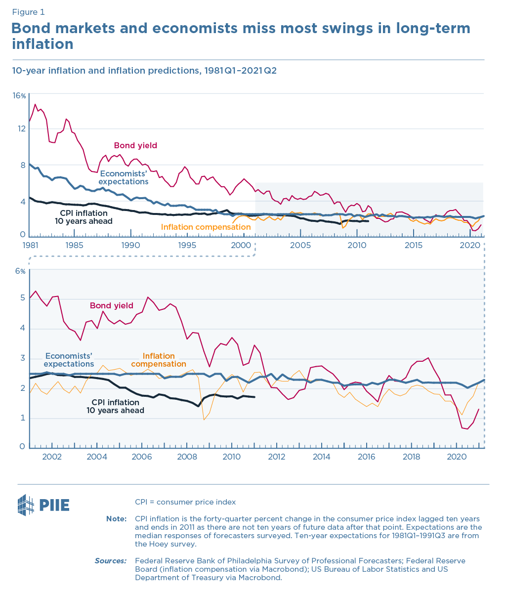 通货膨胀走向可能是当前全球经济中最大的问题。最近的激增会像央行希望的那样是暂时的,还是会持续更久?那么,谁是最好的预测者呢?根据Joseph Gagnon和Madi Sarsenbayev的新研究,这取决于时间跨度。