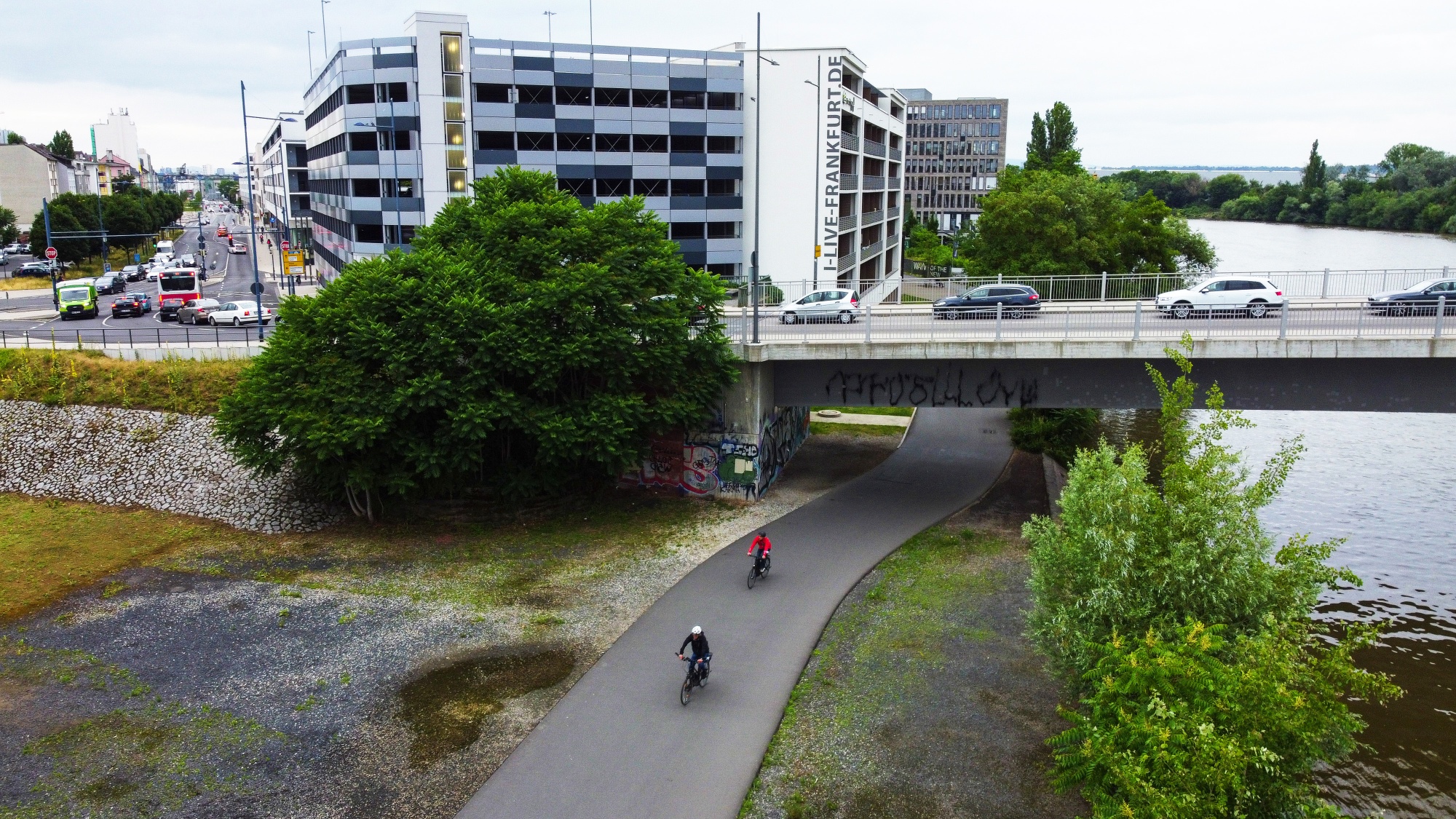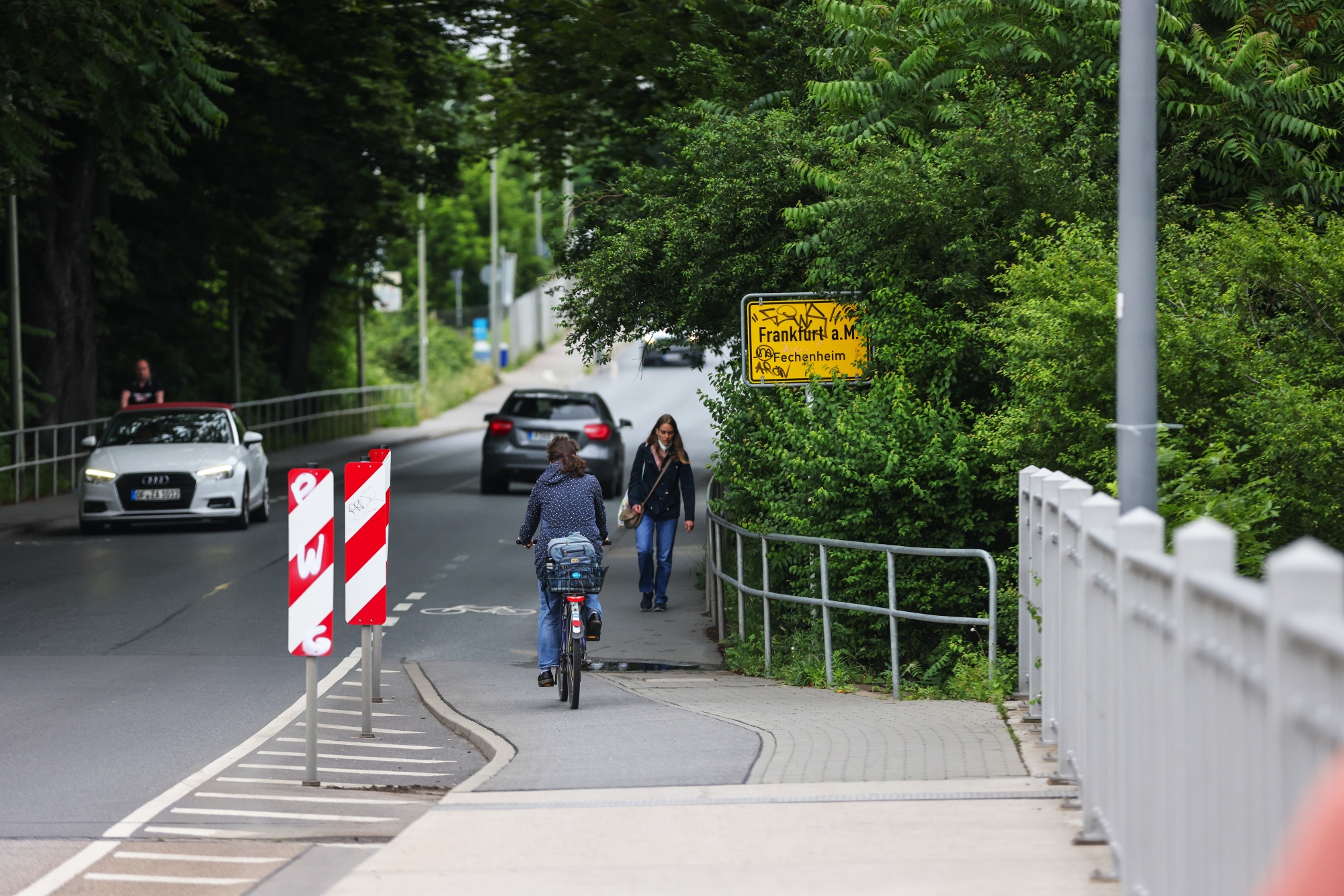 为了到达Offenbach的Main河对岸的商店和餐馆,来自法兰克福东部的行人需要 esquivar 自行车,并在路径上相互挤过,这条路径在最窄的地方几乎比婴儿车还窄。