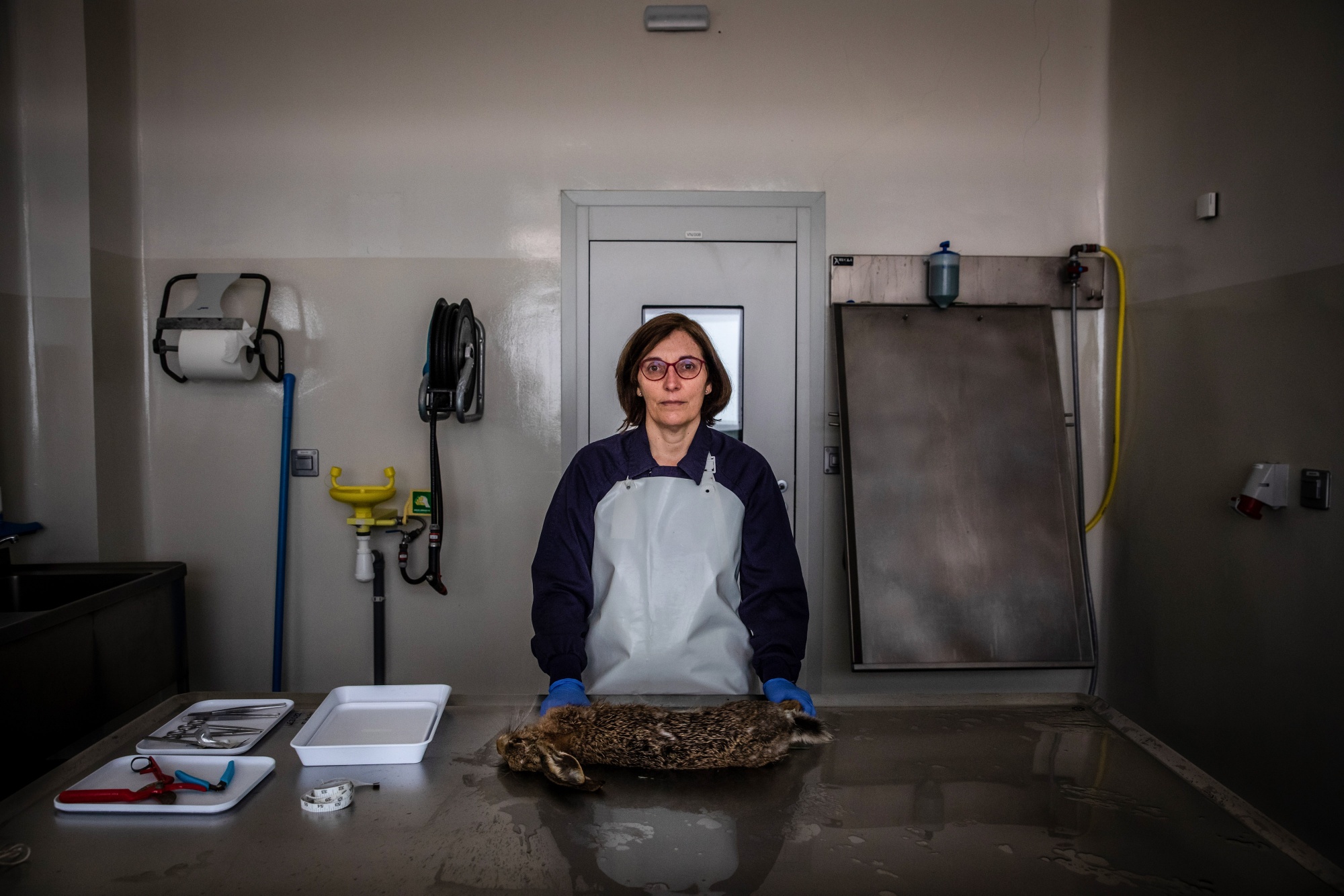 距离卡秋的尸体被发现的地方几百英里远,野生动物病理学家罗塞尔·韦拉德坐在巴塞罗那自治大学兽医学院的办公室里,周围是显微镜和鹿头骨,当时她接到阿方索的电话,告诉她第二天熊的尸体将被送到她的手术台上。在她的二十年实践经验支撑下,韦拉德毫不畏惧——卡秋的尸检几乎不会是她的第一次动物尸检,当然也不是最具挑战性的。有一次,令她的学生和同事大为惊讶的是,她在室外的庭院上对一只鲸鱼进行了尸检,因为这只动物无法放进她的实验室里。