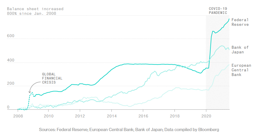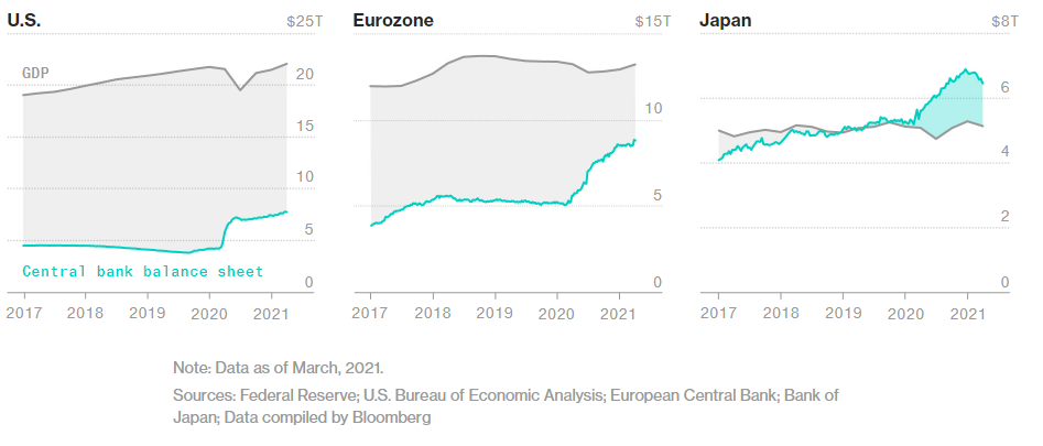 自疫情爆发以来,美国、欧洲和日本的中央银行一直在进行一场9万亿美元的 支出狂欢,这使它们成为拥有24万亿美元资产的终极市场大鲸鱼。