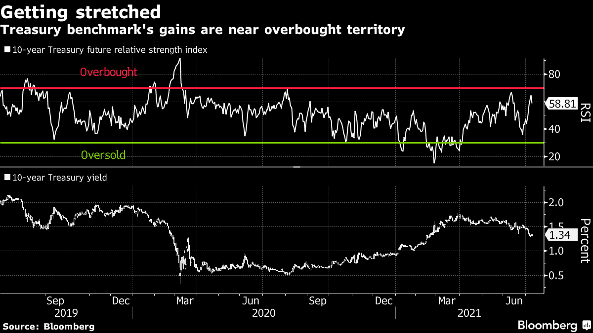 首先,下周将有美国国债供应增加,包括三年期、10年期和30年期的发行。这有助于抑制亚洲交易时段市场的上涨,根据彭博社的相对强弱指数测量,10年期国债从过度拉伸的水平中回落。