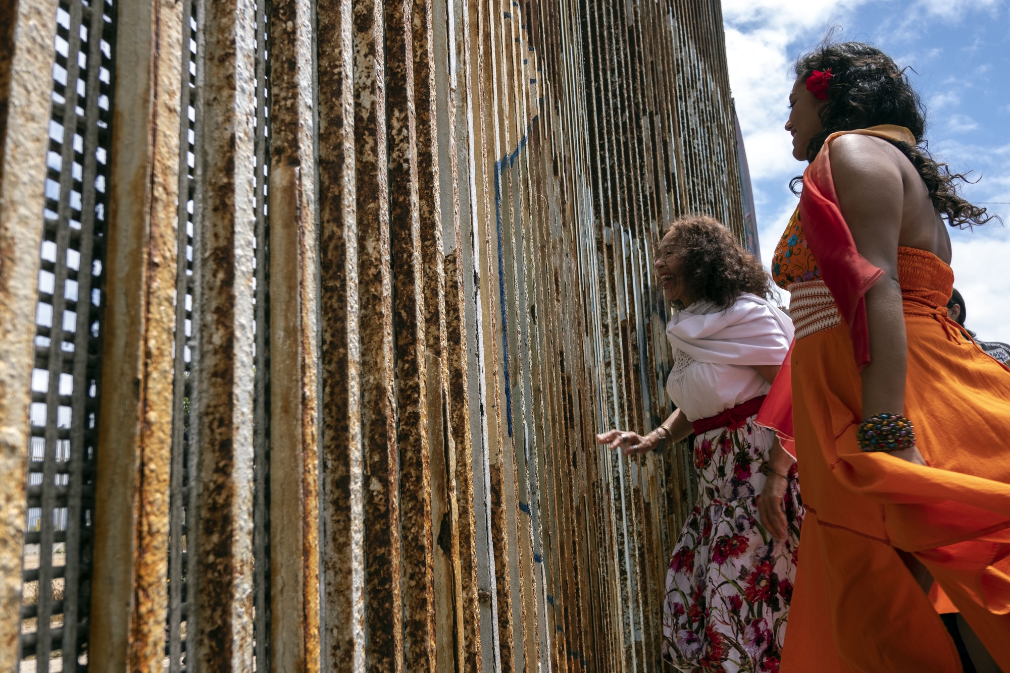舞者们在2018年的“Fandango Fronterizo”年度活动中接近边境围栏,在友谊公园跳舞。在这一年度活动中,音乐家们聚集在围栏两侧演奏和跳舞“Son Jarocho”,这是来自韦拉克鲁斯乡村的一种地区民间音乐风格。