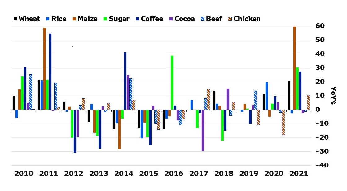国际食品价格已接近2011年的峰值。 十年前,它们引发了一波抗议,尤其是在中东地区。 该地区今天仍然存在风险,但其最薄弱的环节是苏丹和黎巴嫩,而不是埃及和突尼斯。 大型经济体(巴西、中国和俄罗斯)和富裕的烃类生产国(卡塔尔、沙特阿拉伯和阿联酋)最不容易受到食品价格上涨的影响。