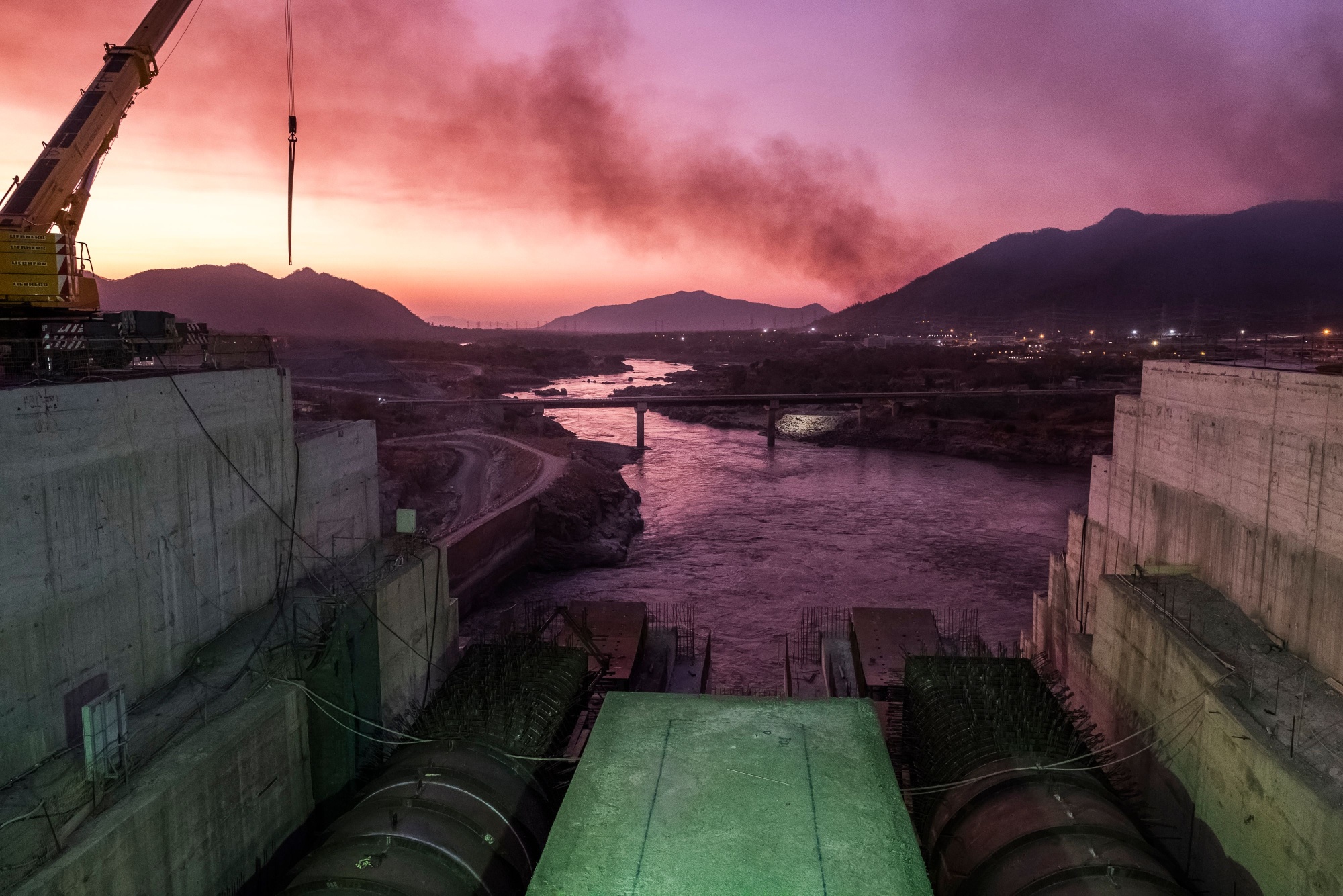 蓝色尼罗河流经埃塞俄比亚大坝。摄影师:爱德华多·索特拉斯/盖蒂图片社