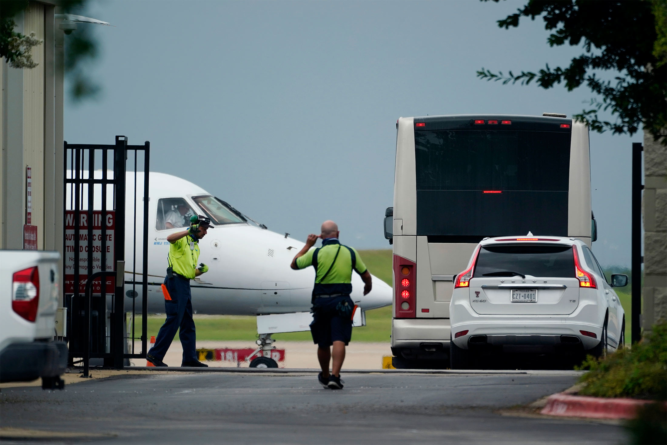 一辆载有德克萨斯州民主党议员的大巴停靠在一架飞往华盛顿的私人飞机旁边。摄影师:埃里克·盖伊/AP点击 这里 关注彭博政治在Twitter上的动态,告诉我们我们做得如何或者我们错过了什么,发送邮件至 [email protected]*。*