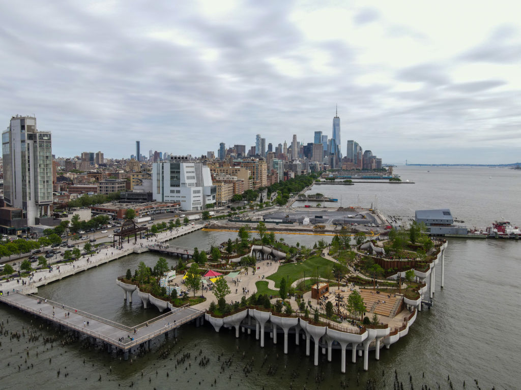 那些其他公园还为不同的活动提供了专门的空间。我不是唯一一个感到困惑,然后失望的人,发现Little Island上的Cor-Ten钢标识上注明的“游乐场”并不是一个游乐场,而是一个名为The Play Ground的繁华食品卡车广场。Little Island上有一些游乐元素,但最有趣、最值得玩的东西并不一定被指定为这样:沿着弯曲的、符合ADA标准的通道通往顶部的栏杆中断处,通向小型岩石攀爬,就像从更大的悬崖上掉下来的碎片。山丘上的草坪足够坚固,可以踢足球,如果你能找到一个平坦的空间。对于下班后的团体,他们提供了鸡尾酒座位。但是,陡峭的梯田草坪也为幼儿爬上去提供了挑战,为更大的孩子滚下来提供了尖叫的乐趣。一个真正的攀爬结构——像总督岛上的原木和绳索——也不会错过。