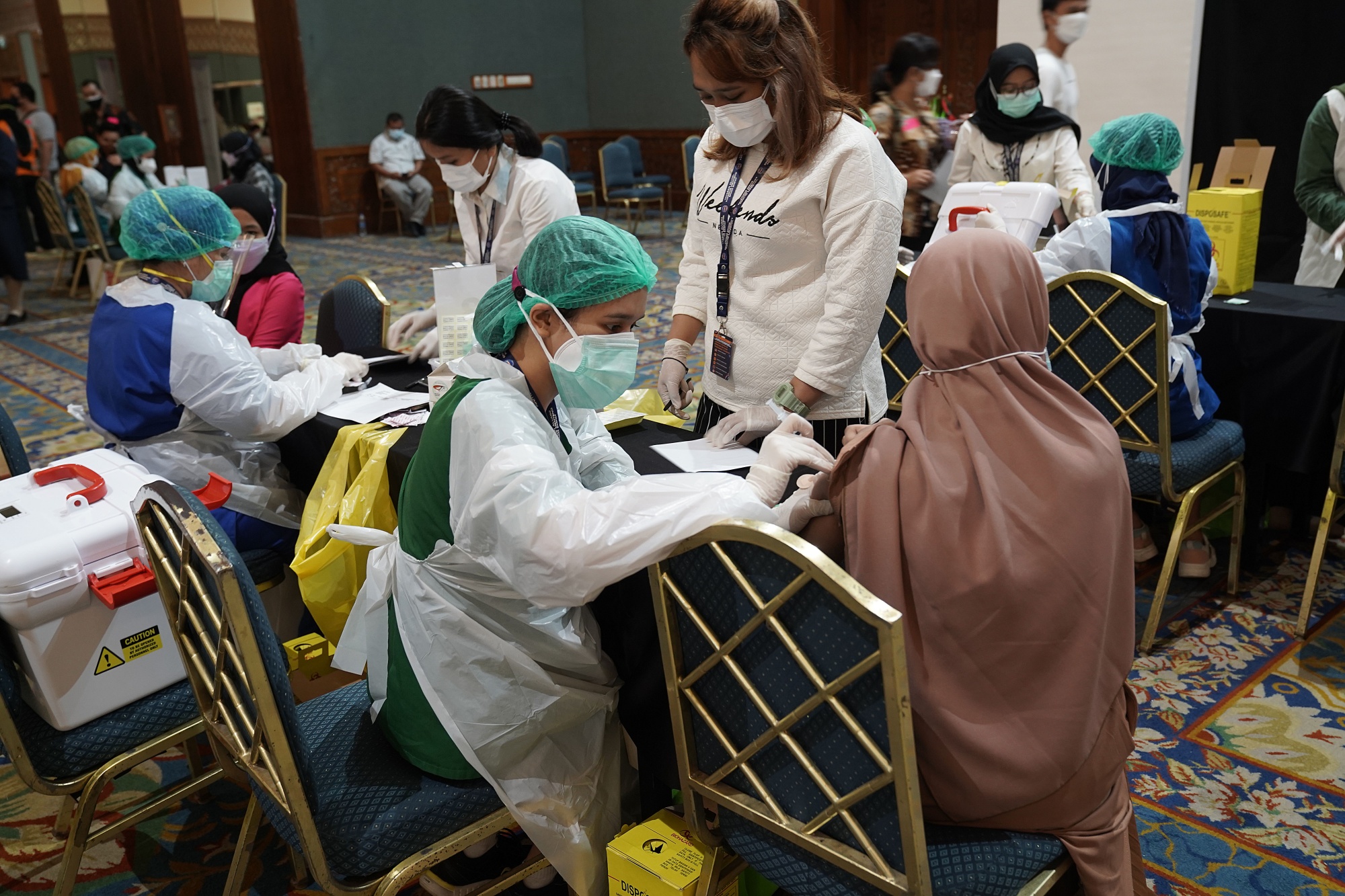 一名卫生工作者在7月15日在雅加达会议中心为人们接种科兴新冠疫苗。印度尼西亚正在加快疫苗接种,因为高传染性的德尔塔变种正在该国蔓延。摄影师:迪马斯·阿迪安/彭博社在Covid-19 mRNA疫苗(如辉瑞-联德)和灭活病毒疫苗(如科兴疫苗)生成的抗体之间存在很大差距。前者可以生成10倍,根据一项香港的研究。在亚洲其他地方,菲律宾刚刚报告了首例源自德尔塔变种的确诊病例,而新加坡将关闭数百家夜店,并在放松措施几天后恢复对餐厅的更严格措施,因为每日病例数与卡拉OK俱乐部有关。印度卫生官员进行了一项关于“突破性病例”的新研究,即完全接种疫苗的人感染后,有多少随后死亡。以下是关于疫情的最新情况。