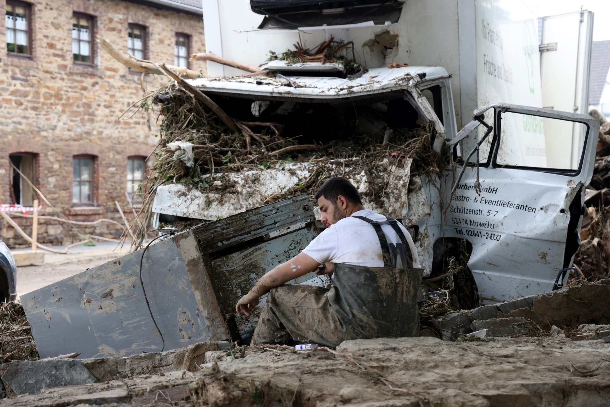 周六,一名男子在德国巴德诺因阿尔韦拉进行清理工作时休息。摄影师:Liesa Johannssen-Koppitz/Bloomberg点击 这里 关注彭博政治在Twitter上的动态,告诉我们我们做得如何或者我们错过了什么,发送电子邮件至 [email protected]*。*