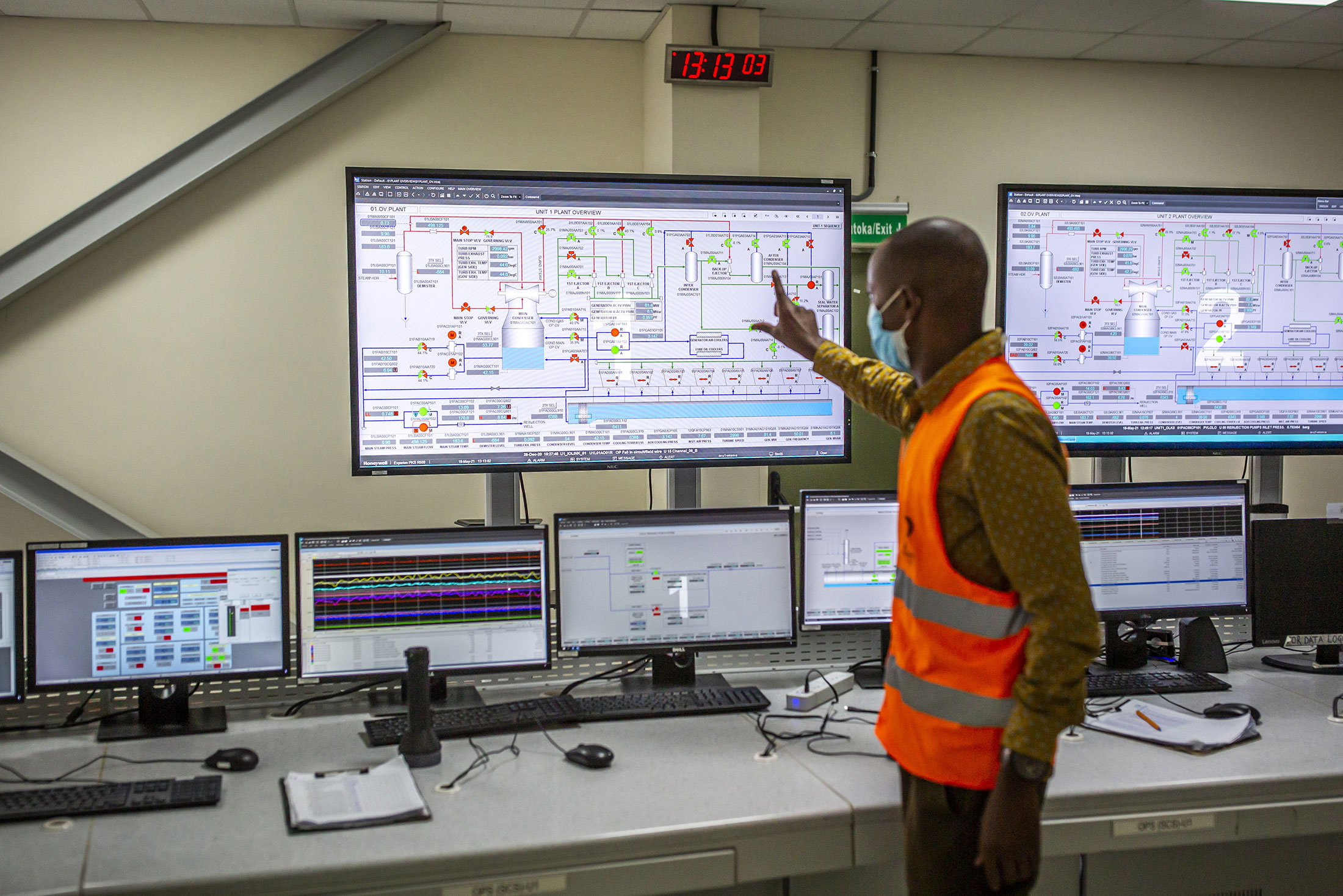 奥尔卡利亚发电厂的控制室。摄影师:Patrick Meinhardt/Bloomberg来自其他可再生能源的竞争,这些能源建设速度更快,承诺更快的投资回报,也是一个担忧。肯尼亚约12%的电力来自风能和太阳能,这一比例比五年前的不到1%有所提高。不过,与这些技术不同,地热不需要刚劲的微风或阳光明媚的天气来提供稳定的能源流。与肯尼亚也依靠水力发电的情况相比——肯尼亚正计划在2030年实现100%的可再生能源,地热发电厂不会受到干旱或可能切断供水的好战邻国的威胁。“地热提供清洁、不间断的基础电力,其他可再生能源无法做到这一点,”Fitch Solutions的分析师Derrick Botha表示。